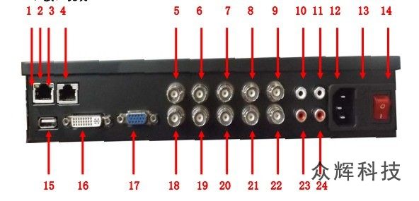 8 | 視頻2輸入,BNC接口。 |